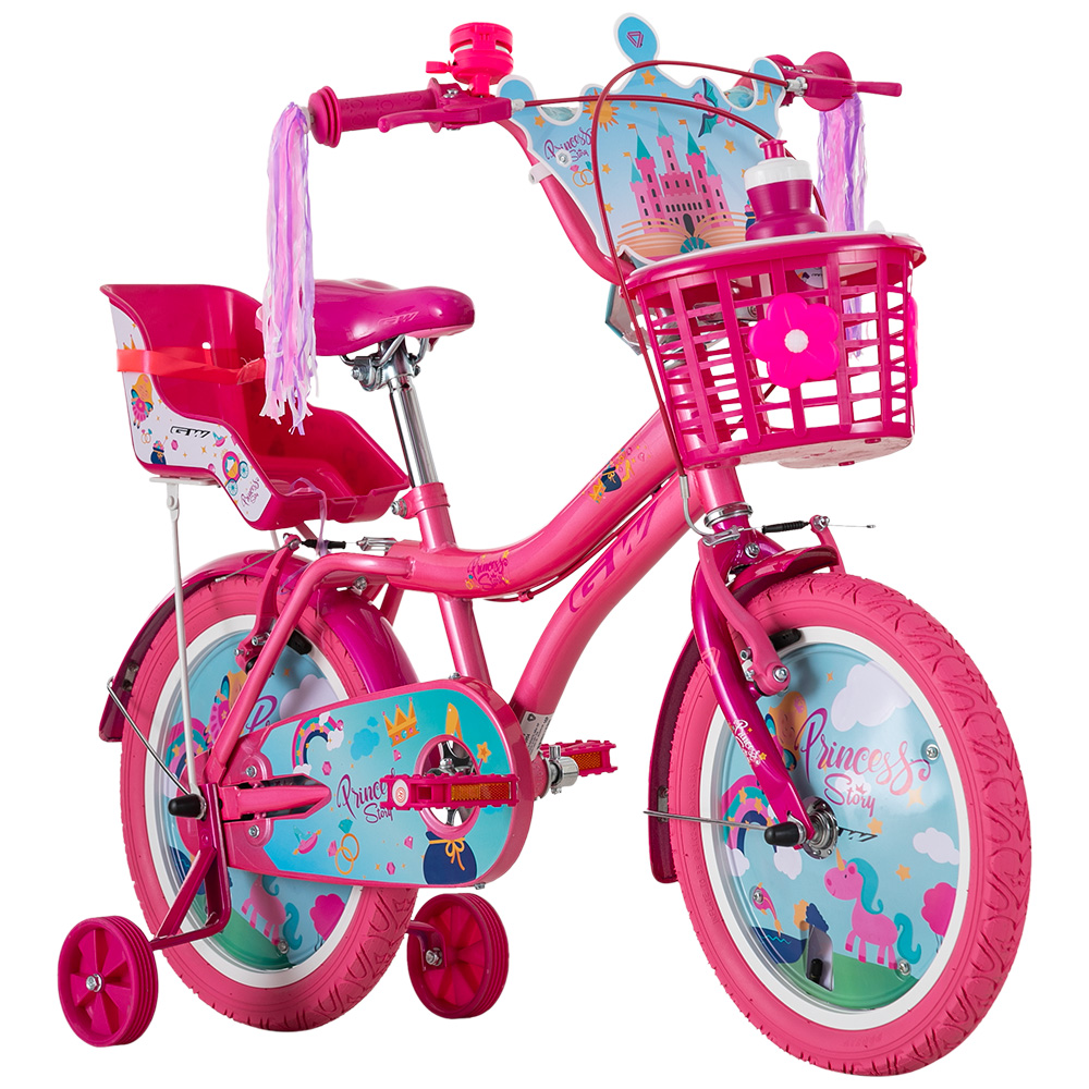 La bicicleta GW Princess Story rin 16 es el regalo ideal para las pequeñas soñadoras que desean explorar el mundo con estilo y diversión. Diseñada para niñas de 4 a 7 años (estatura entre 100 y 117 cm), combina seguridad, comodidad y un toque de fantasía que convierte cada salida en un momento especial.