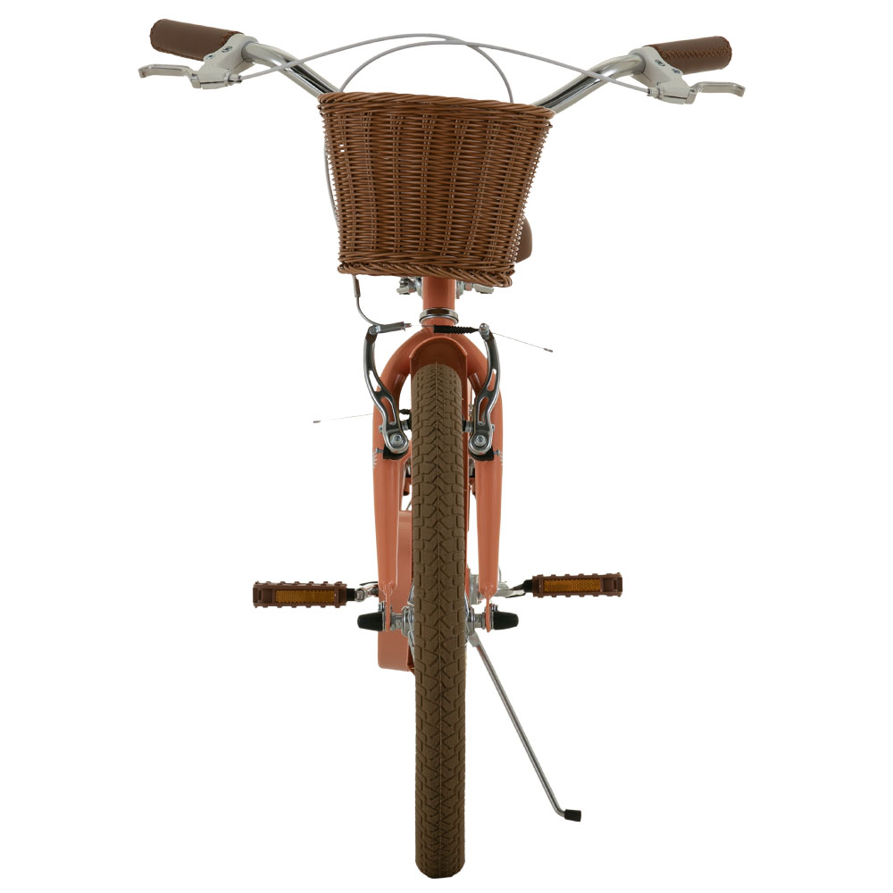 Sus llantas 20 junto con los mangos tipo cuero, los pedales reflectivos y la canasta tipo mimbre, le dan un toque elegante y práctico. Además, cuenta con frenos V-brake en aluminio para una frenada segura y un sillín ajustable para mayor comodidad. Con su llamativo color que le da una personalidad única y perfecta para quienes buscan una bicicleta funcional, estética y con aire vintage.