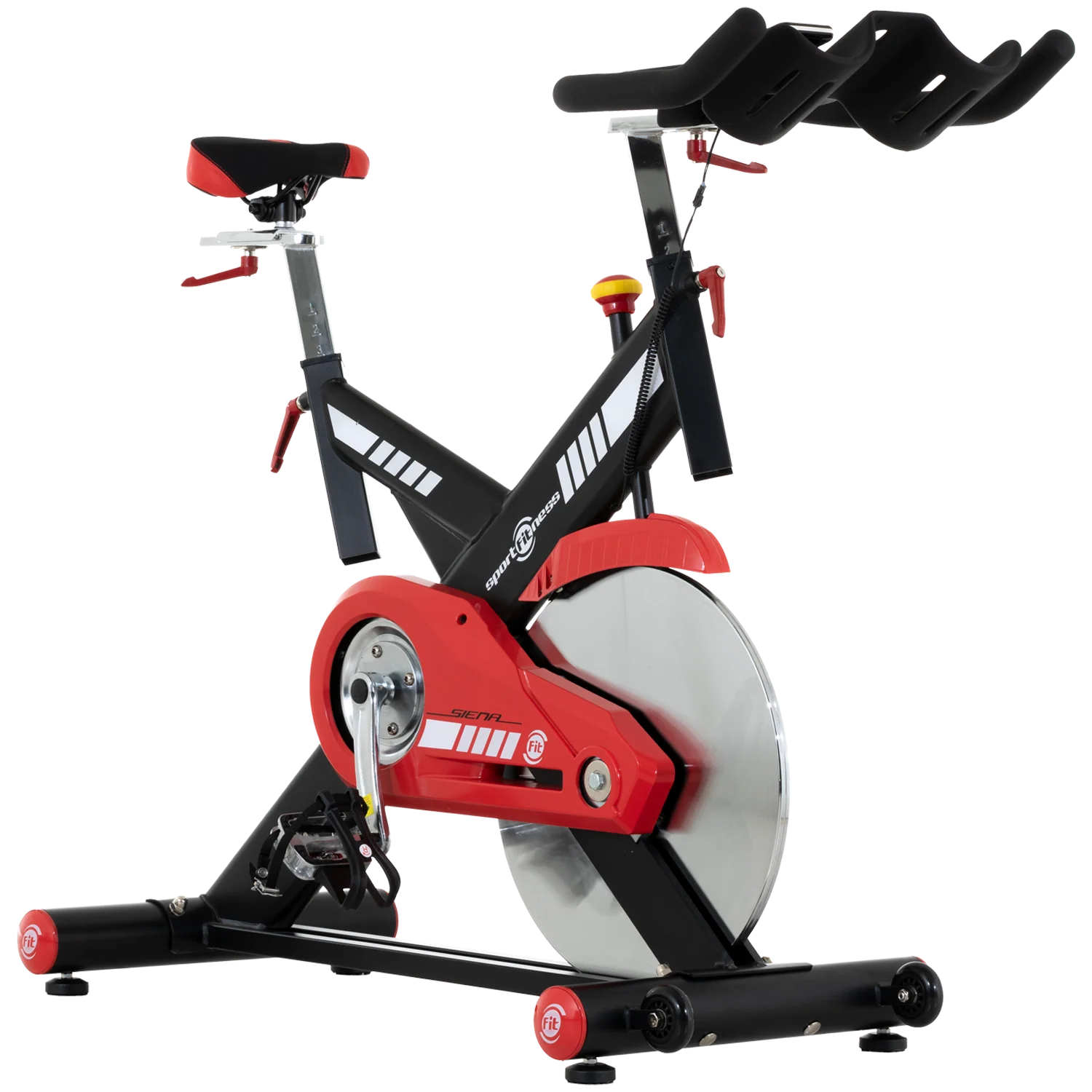 Bicicleta spinning de banda Sportfitness ideal para tu entrenamiento cardiovascular. Algunos de los beneficios de las bicicletas estáticas son la tonificación del cuerpo, quema de calorías, y prevención de enfermedades. Es perfecto para los que buscan ejercicio con bajo riesgo de lesión. La Bicicleta Spinning Siena Sportfitness tiene la ventaja de tener una estructura robusta, perfecta para un alto tráfico.