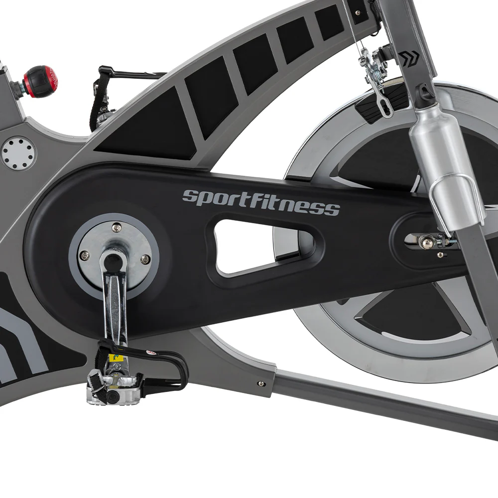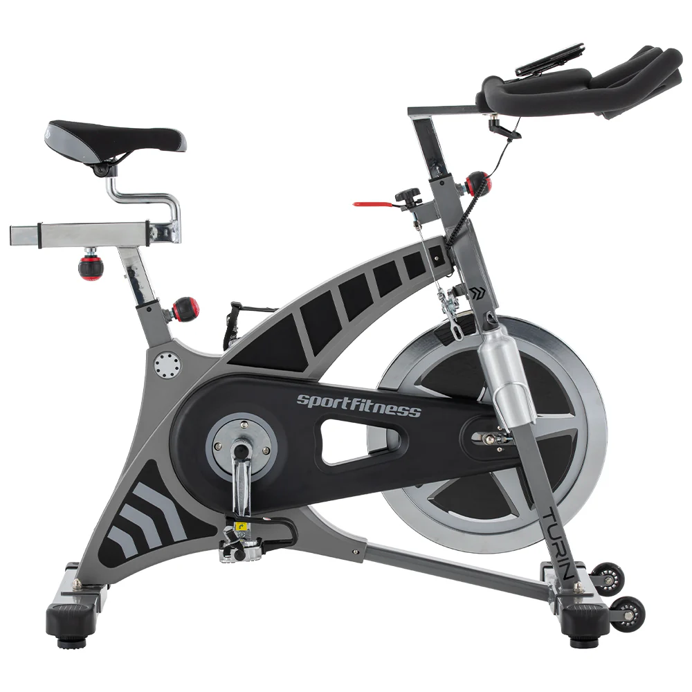 Bicicleta spinning de banda Sportfitness ideal para tu entrenamiento cardiovascular. Algunos de los beneficios de las bicicletas estáticas son la tonificación del cuerpo, quema de calorías y prevención de enfermedades. Es perfecto para los que buscan ejercicio con bajo riesgo de lesión. La Bicicleta Spinning Turín Sportfitness tiene la ventaja de tener una estructura robusta, perfecta para un alto tráfico.
