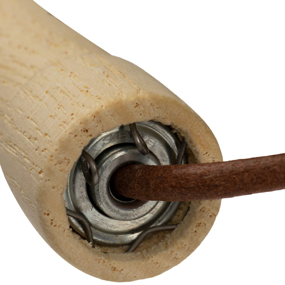 - Cuerda de cuero para saltar con mangos en madera y rodamientos blindados