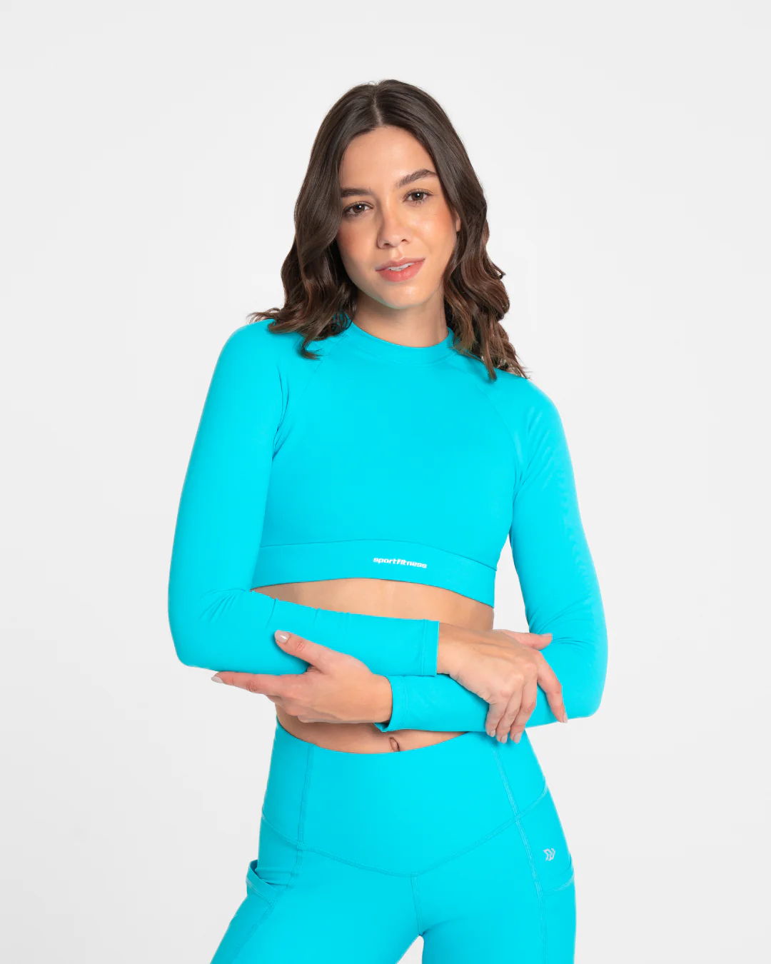 - Top deportivo de silueta crop de manga larga que te permite lucir unos brazos mas estilizados además de generar protección del sol.