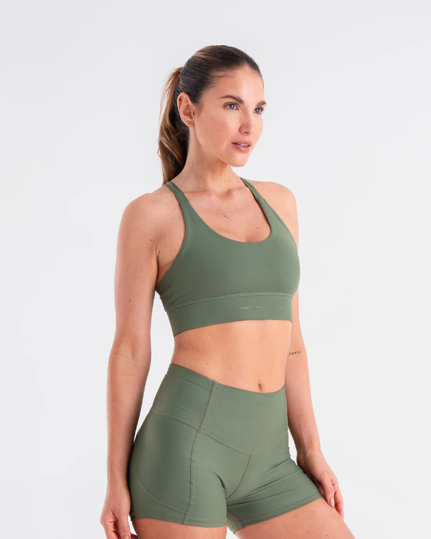 - Top deportivo de soporte alto con diseño cruzado en la espalda.