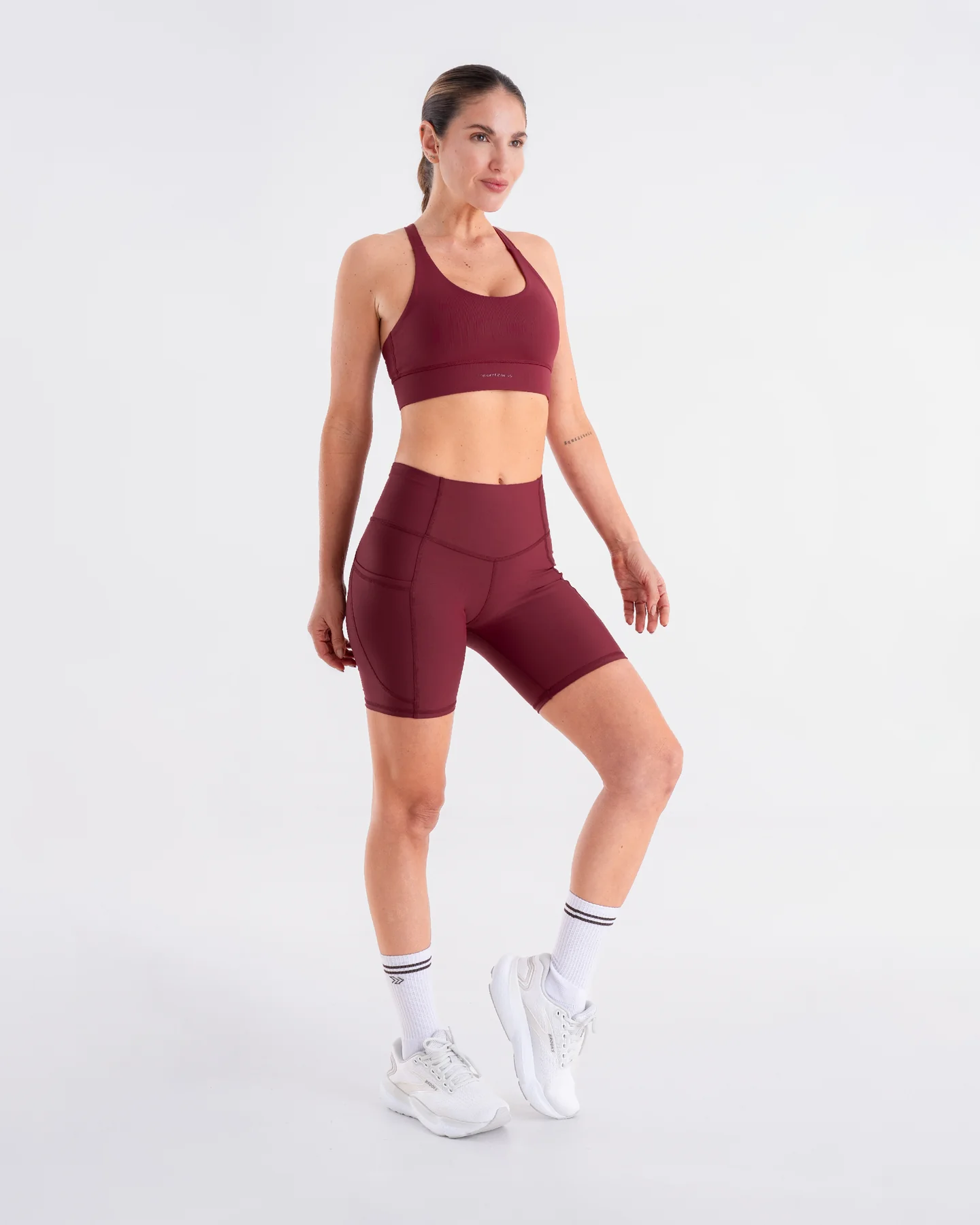 • Top deportivo de soporte alto con diseño cruzado en la espalda.